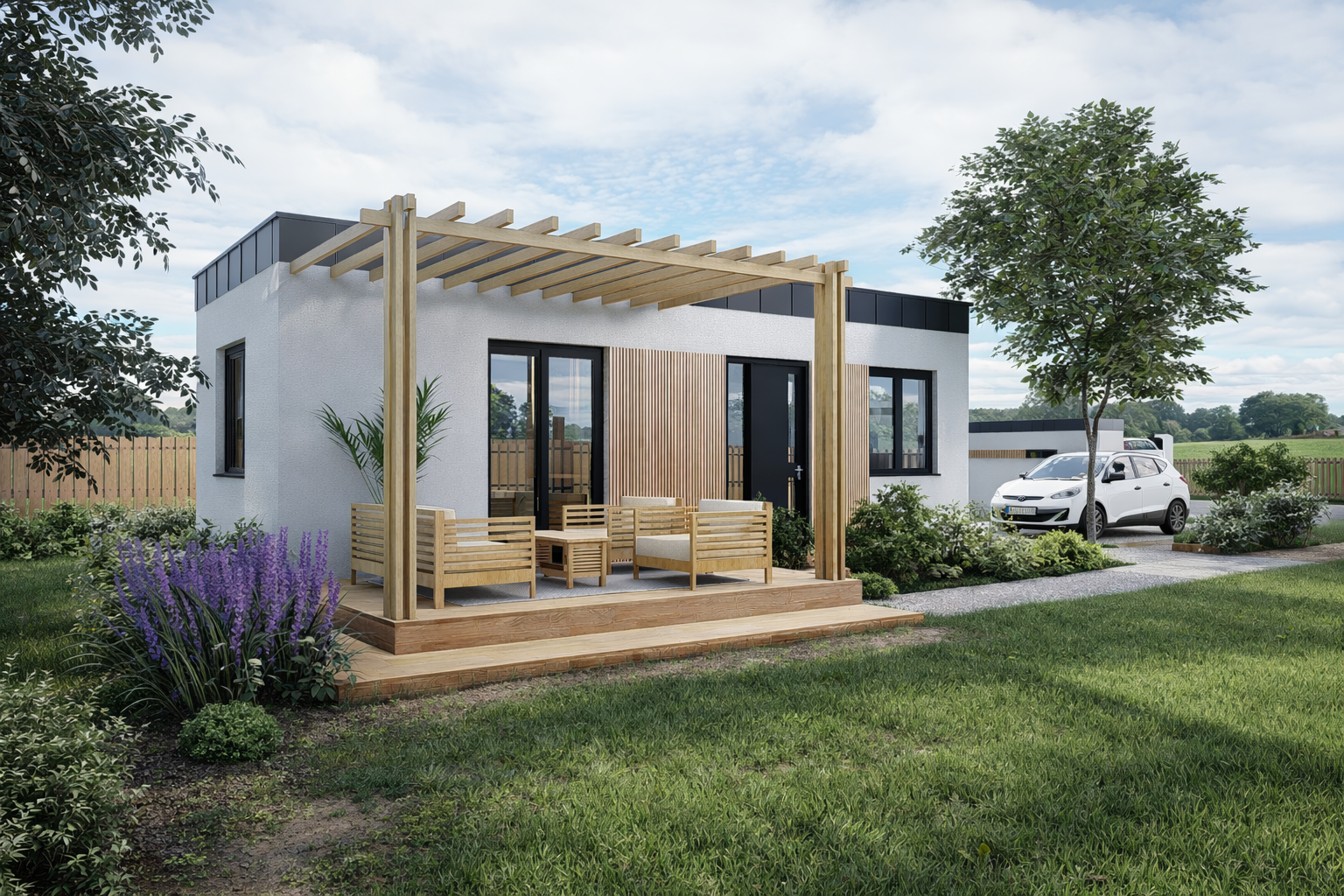 Kompaktný a plnohodnotný modul s dostatkom priestoru pre trojčlennú rodinu s úžitkovou plochou 72 m². Dispozícia domu umožňuje komfortné prepojenie interiéru s veľkou terasou. Dodaný za 6-8 týždňov.