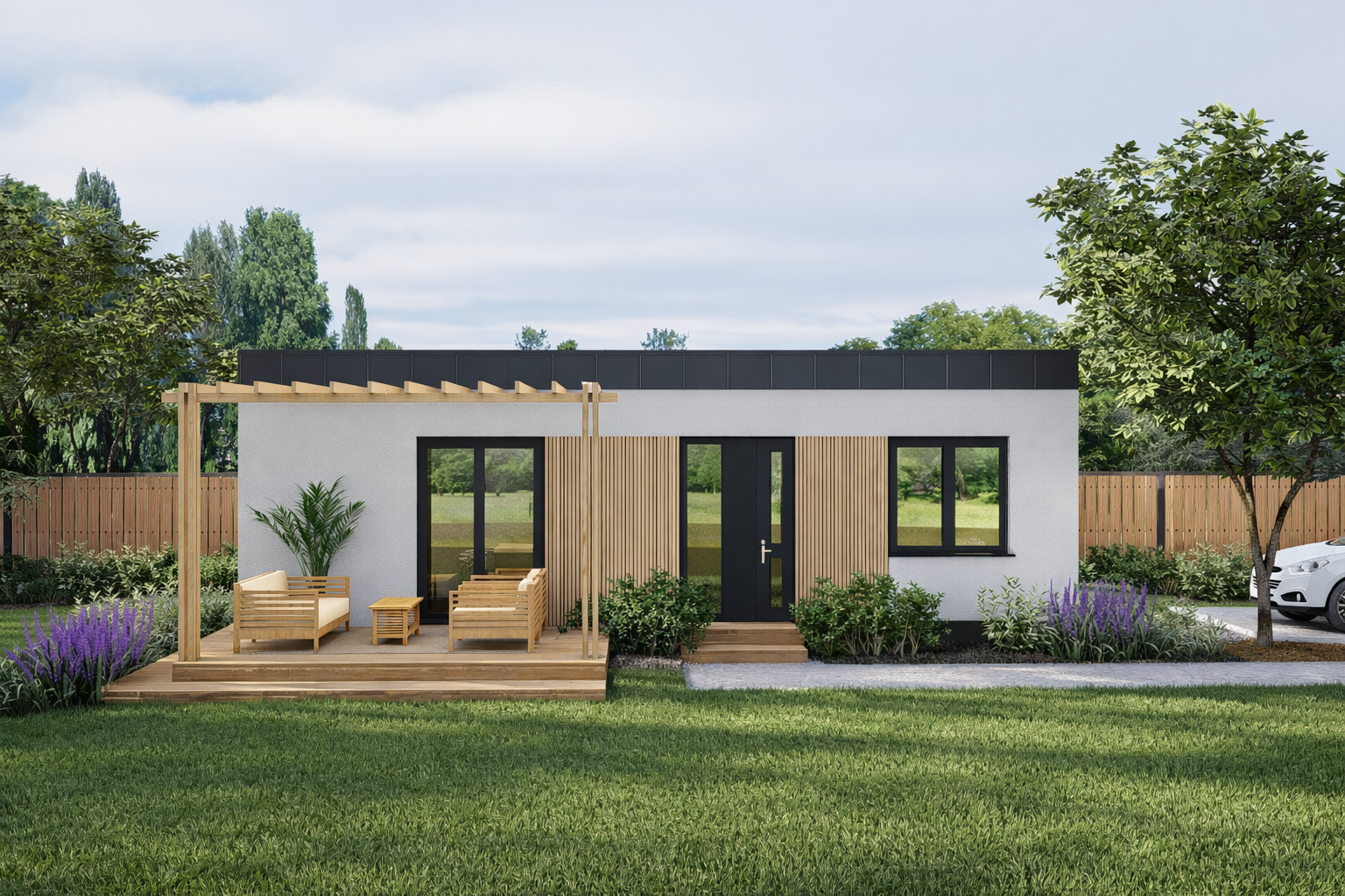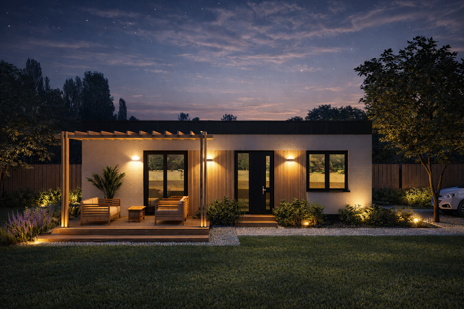 Ideálny ako víkendové bývanie, hosťovský dom alebo štartovací domov. Je kedykoľvek rozšíriteľný o ďalší modul alebo terasu.